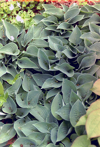 Hosta hybr.'Blue Cadet' - Funkie![]() Bildet dichte, kompakte und runde Hoste mit blaugrünen, herzförmigen Blättern. Die Hoste werden etwa 40 cm hoch, die lavendelfarbenen Blüten erscheinen im Juni.